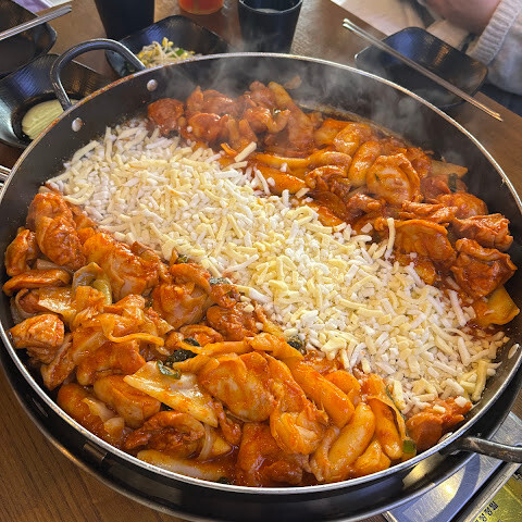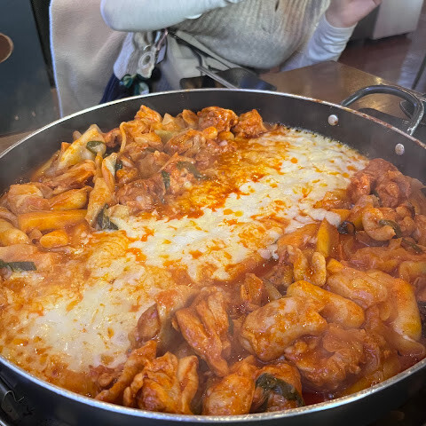 여기 닭갈비는 정말 최고였어요! 닭고기는 부드럽고 양념이 잘 배어 신선한 채소와 쫄깃한 떡과 함께 볶아졌는데, 매콤하면서도 감칠맛 나는 맛이 정말 좋았어요. 직원분들이 테이블에서 직접 닭갈비를 섞어주셔서 더욱 즐겁고 정통적인 경험을 할 수 있었어요. 치즈 추가는 강력 추천합니다. 치즈가 더해지면 더욱 부드럽고 중독성 있는 요리가 완성되거든요!