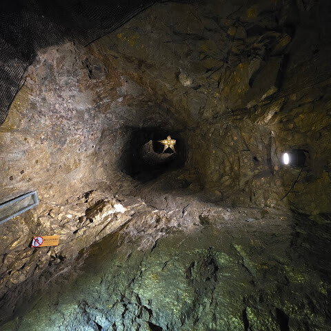 빛나는 동굴. 몇몇 수족관 구역도 있습니다. 원래는 1900년대 초 금광이었습니다. 수십 년 동안 방치되다가 2011년 관광 명소로 재개발되었습니다.