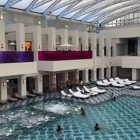 공항 가기 전에 즐길 수 있는 꽤 괜찮은 경험이었어요! 가족 친화적인 곳이라 특히 수영장 주변에 아이들이 많이 뛰어다니니, 아주 편안한 분위기의 스파는 아니라는 점을 감안하셔야 해요. 저는 수영장과 스파 이용권을 구매했는데, 스파 이용권만 살 걸 그랬나 싶기도 해요. 아이들과 함께라면 수영장은 좋지만, 앉을 자리가 거의 없어서 따로 좌석을 구매해야 해요. 별 4개를 준 이유는 수영장 종류가 좀 헷갈려서 나가기 직전에야 찾았기 때문이에요! 직원분들의 안내가 좀 더 있었으면 좋았겠지만, 환승 시간이 길다면 다시 방문할 의향이 있어요.