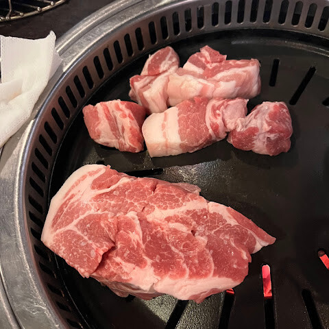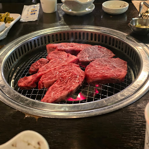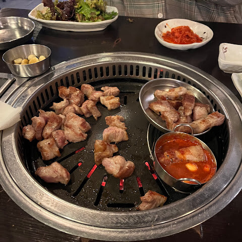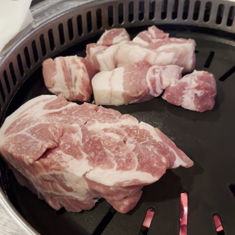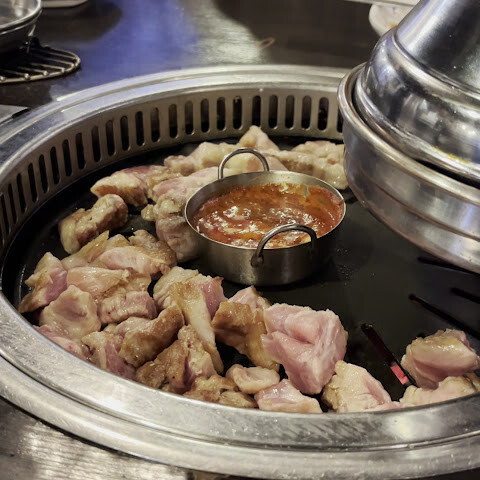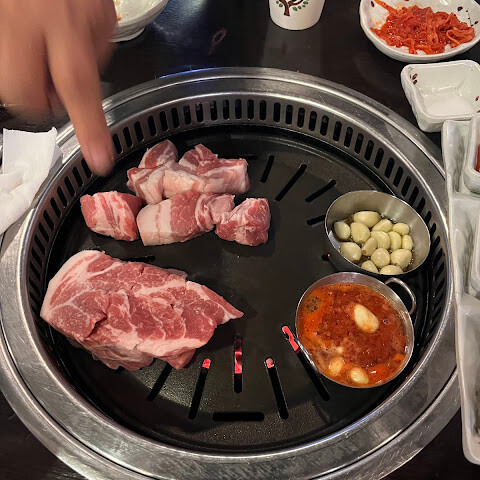 이 한국식 바비큐 레스토랑에서 만족스러운 식사를 즐겼습니다. 특히 삼겹살, 목살, 등심은 모두 풍미가 좋고 잘 구워져 있었습니다. 소스 조합도 훌륭했고 각 부위의 고기와도 잘 어울렸습니다. 서비스도 세심하고 친절해서 즐거운 시간을 보냈습니다. 다만 "1인 1개"라는 규칙이 조금 아쉬웠는데, 저희에게는 조금 과하게 느껴졌지만, 전반적으로 만족스러운 식사 경험이었습니다.