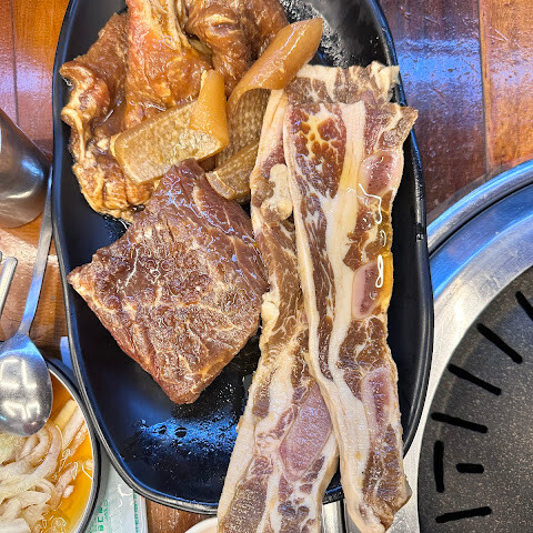 근복궁 관광 후에 우연히 이 식당을 발견했어요. 고기가 정말 맛있었어요! 소갈비와 돼지갈비를 시켰는데, 소갈비는 살코기가 많고 숱도 푸짐했어요. 가격도 아주 저렴했고요. 이번 여행에서 가장 맛있었던 식사 중 하나였어요. 사장님도 너무 친절하셔서 국도 무료로 주셨어요.