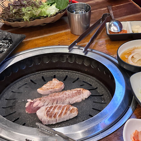 경복궁을 둘러본 후 이곳을 찾았습니다. 고기가 너무 맛있었어요! 저희는 소갈비살과 돼지갈비살을 주문했어요. 갈비살은 그렇게 얇은 종류가 아니어서 고기가 너무 많았어요. 매우 합리적인 가격. 아마도 여행 중 최고의 식사 중 하나 일 것입니다. 주인분이 너무 친절하셔서 수프도 무료로 주셨어요.
