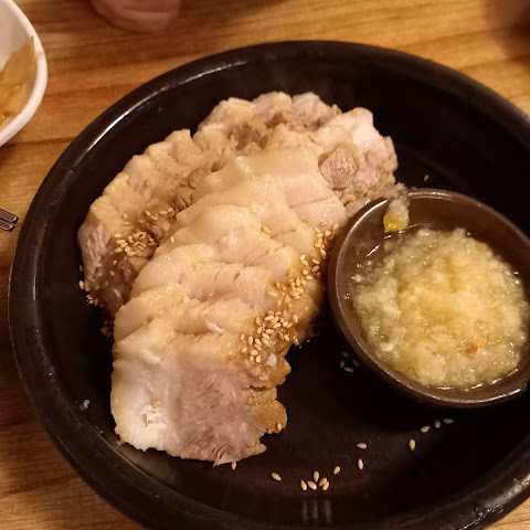 작은 골목에 자리 잡은 귀여운 식당. 작은 마늘 보쌈과 부추전을 주문해서 나눠 먹었어요. 정말 맛있었어요.
