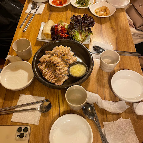평일 오후 2시에 도착해서 줄을 서지 않고 바로 들어갈 수 있었습니다. 직원들이 매우 환영해 주었습니다. 저희는 평소처럼 1인분인 상추마늘쌈과 매콤한 돼지갈비찜을 주문했습니다. 돼지고기는 부드럽고 질기지 않았고, 마늘소스와 절인 양배추는 맛있었습니다. 사이드 메뉴로는 절인 깻잎과 매콤한 무절임이 있었는데, 둘 다 놀라울 정도로 맛있었습니다. 매콤한 돼지갈비찜은 풍미가 진했고, 매콤한 김치 세 조각이 함께 나왔습니다. 김치를 한입 크기로 자르기 위한 가위가 제공되었습니다. 새콤달콤한 맛은 상추와 밥 모두와 함께 먹어도 맛있었습니다. 막걸리는 밥과 아주 잘 어울렸습니다. 전반적으로 식사 경험은 매우 즐거웠습니다. 서울에 가면 꼭 다시 방문할 거예요!