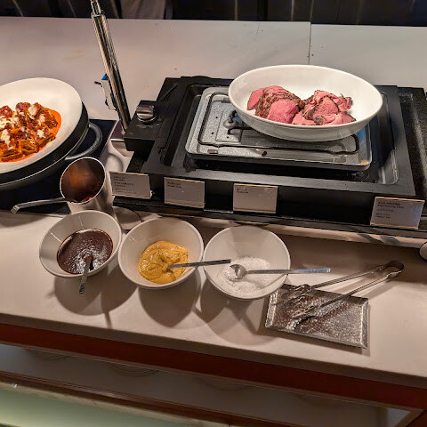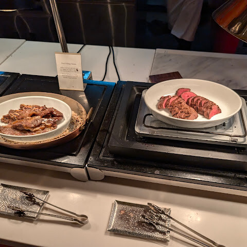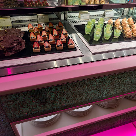 1인당 제공되는 하이볼이나 레드 와인(칠레 메를로) 한 잔은 정말 훌륭했고, 산펠레그리노는 신선했습니다! 뷔페의 하이라이트는 단연 랍스터, 킹크랩, 양고기입니다. 누구나 좋아할 만한 메뉴가 있습니다. 초밥과 사시미는 매우 신선하고 치즈도 다양합니다. 디저트는 맛있지만, 절대 포기할 수 없는 맛입니다. 델리카-한스 베이커리에서 케이크를 판매하니 꼭 드셔 보세요. 거의 절반의 지점에서 셰프가 직접 서빙해 드립니다. 놀라울 정도로 맛있는 더블 에스프레소는 마무리로 완벽한 선택이었습니다.