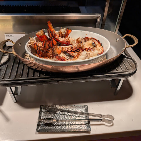 호텔 1층 뷔페에서는 구운 랍스터가 인상적인데요, 숯불 향과 랍스터의 달콤함이 어우러져 정말 맛있습니다. 직원들도 매우 친절합니다. 주말 점심은 1인당 약 NT$4,500입니다. 숙박하시는 경우 50% 할인 혜택을 받으실 수 있습니다. (체크아웃 후 확인 가능)