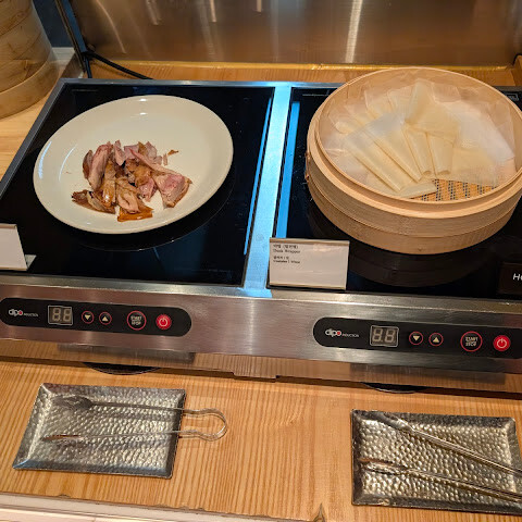 라세느는 서울 3대 뷔페 중 하나라고들 합니다(신라호텔, 웨스틴조선호텔 뷔페와 함께). 정말 기대 이상입니다. 공휴일에 점심으로 갔는데, 저녁 메뉴와 동일했습니다. 근무 시작 시간에는 서빙을 받기 위해 줄이 조금 있었지만 금방 줄어듭니다. 분위기는 차분했지만 창가 자리보다 더 좋을 순 없었습니다. 서비스는 효율적이었고, 음식 정리도 빨랐지만, 몇몇 웨이터들은 마치 엑스트라처럼 보였습니다. 서빙 시간은 두 시간입니다.