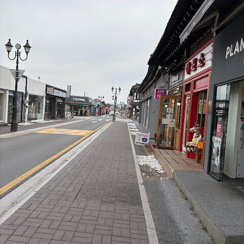 전통 건축 양식의 상점들로 가득한 아주 예쁜 거리입니다.