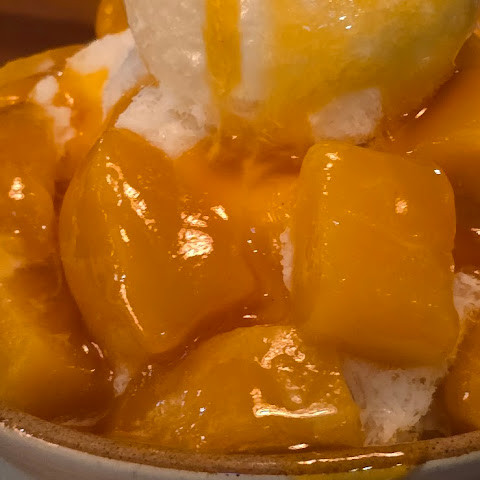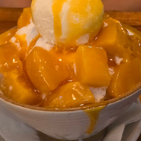 망고빙수를 세 명이서 주문했는데 양이 푸짐했어요. 맛도 맛있었고, 정말 만족스러웠어요.