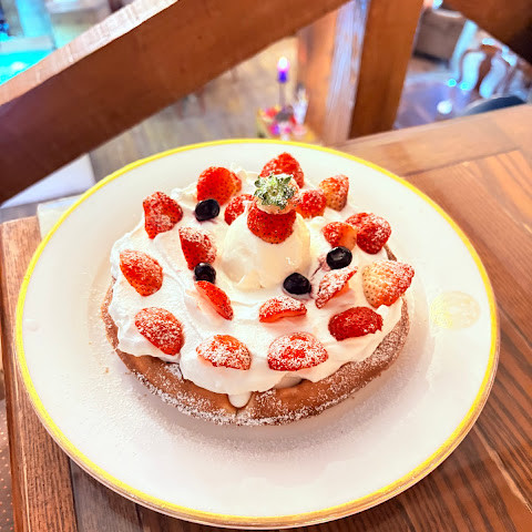 가장 중요한 건 딸기 와플이 마치 생일 케이크 같다는 것입니다. 생일을 축하하며 예쁜 사진을 찍으러 오시는 걸 추천합니다. 매장 직원에게 문의하시면 예쁜 사진 촬영 장소를 예약해 드리는 것도 잊지 마세요!