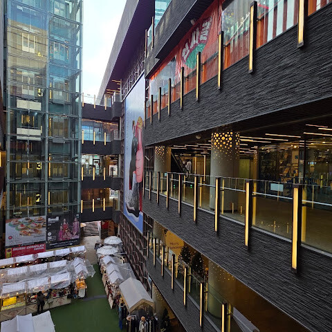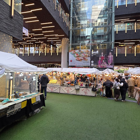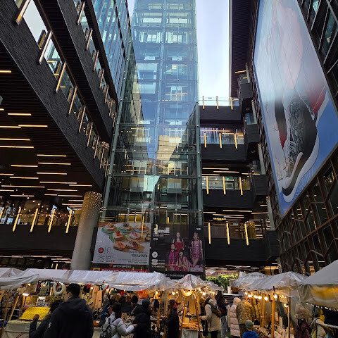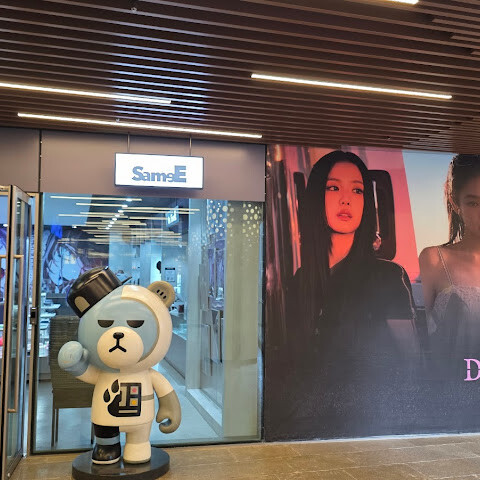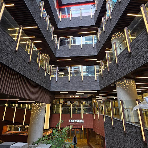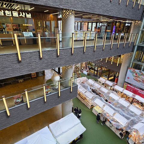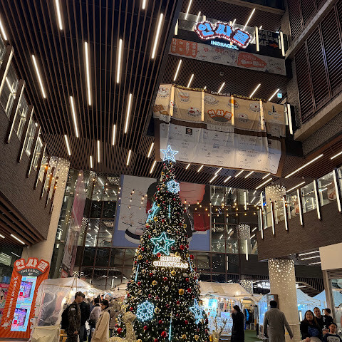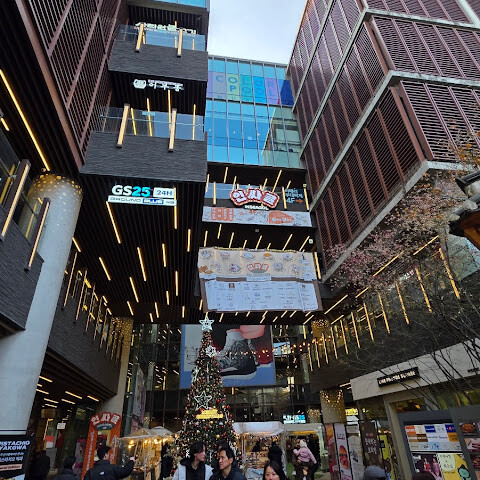비교적 새로 생긴 쇼핑몰로 위층에는 K팝 관련 매장들이 있습니다. 1층에는 크리스마스 팝업 스토어와 카니발이 열려 쇼핑몰 분위기가 활기찼습니다. 쇼핑몰 안에는 다양한 식음료 매장도 있습니다.