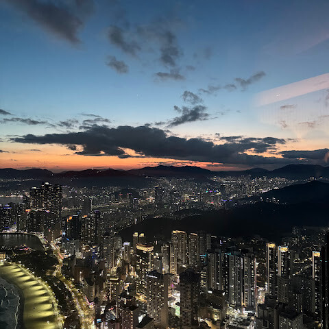 저희는 패스를 이용해서 여기까지 왔어요. 밤에 드론 비행을 보고 싶었는데, 여기는 낮에만 경치를 볼 수 있더라고요. 그래도 낮에도 정말 아름다웠어요. 고층 건물들이 마치 비현실적으로 보일 정도였고, 해안 관광이 얼마나 잘 발달했는지 놀라웠어요. 시설도 훌륭했고요. 가장 높은 건물에는 스타벅스가 있었고, 100층에 올라간 후에는 해안 열차를 탔어요. 사람이 정말 많아서 모든 걸 다 볼 수는 없었어요. 모든 걸 다 보려면 여러 번 와야 할 것 같아요. 해운대 해변과 해안선, 그리고 새로 지어진 건물들을 구경하기에 정말 좋은 곳이에요!