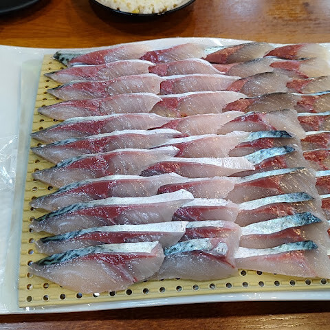 아이들이 꼭 오고 싶다고 해서 (작년에도 왔었어요)... 어쨌든, 여기 나온 고등어 회는 정말 맛있었어요. 초밥으로 만들어 먹을 수 있는데, 정말 최고였어요.