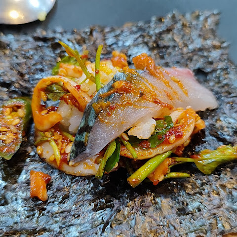깔끔하고 무난했음. 고등어회에 대해 의문이 있었는데 김에 싸먹는 방법이 재밌있음. 양이 아주 많은 편은 아닌데 85,000 으로 3명이 먹을만함. 4명은 회를 추가하던지 고등어 구이를 추가하면 될듯.