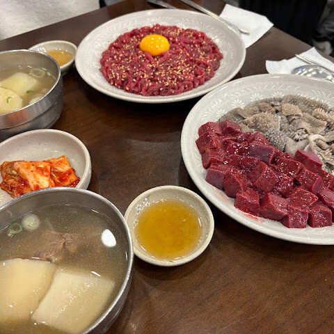 음식이 맛있고 신선해요. 무료로 제공되는 소고기 수프도 정말 좋았어요. 가격도 아주 합리적이에요. 생고기를 처음 먹어봤는데 다 맛있었어요.