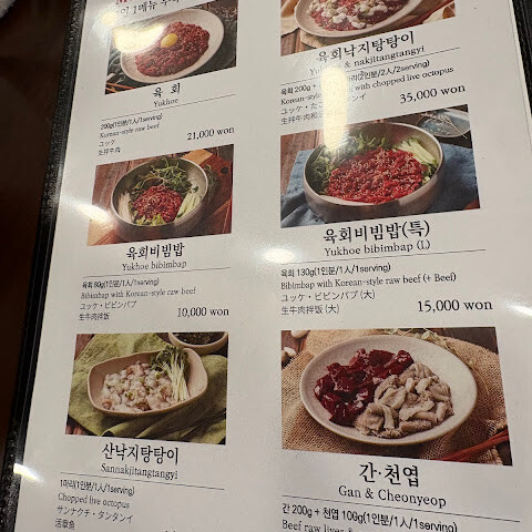 전통적인 분위기에서 정말 맛있는 육회를 즐길 수 있어요! 살아있는 낙지를 곁들인 메뉴도 꼭 드셔보세요!!