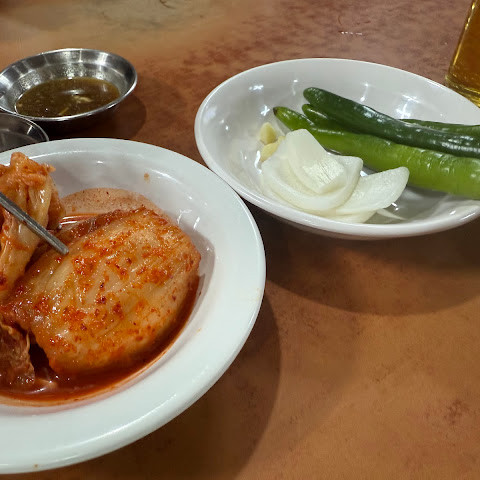 고기가 부드럽고 맛있다. 김치도 몇 종류 있어 밥이 진행된다.