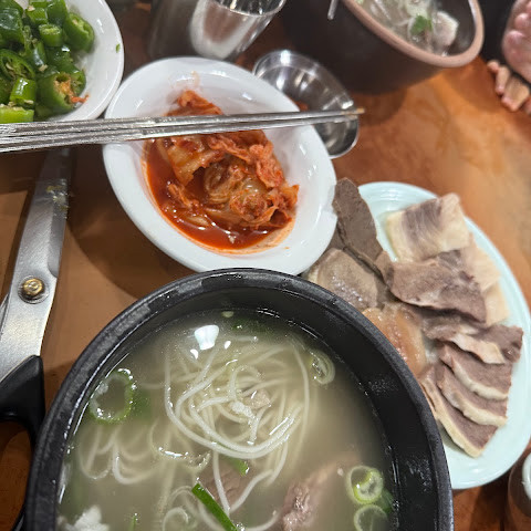 소뼈탕은 소고기가 듬뿍 들어가서 정말 맛있어요. 면과 밥도 함께 나와요 👍🏼