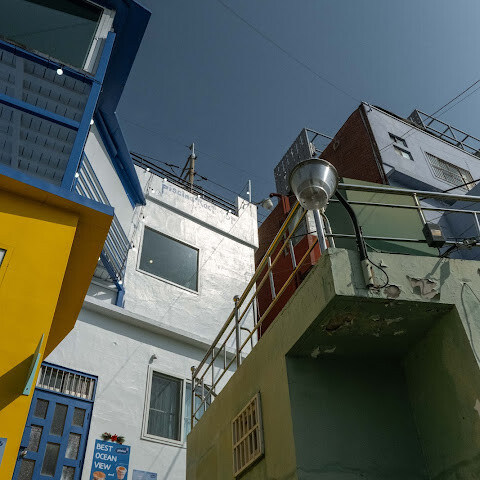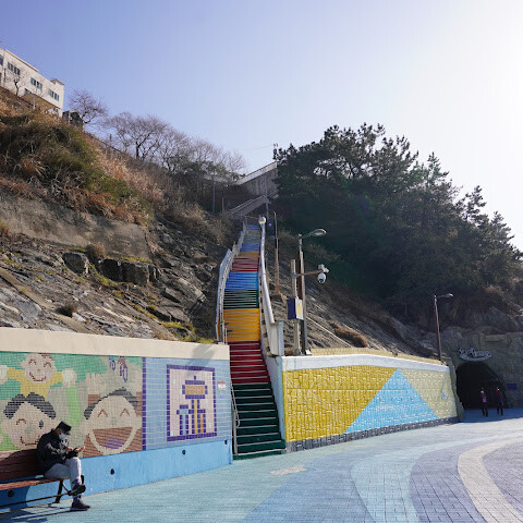 개인적으로 부산 문화마을 중에서 가장 마음에 드는 곳이에요. 언덕 위 산책로에는 카페와 아기자기한 가게들이 있고, 바닷가 쪽으로 가면 작은 터널도 있어요. 맑은 날에 가면 멋진 경치를 감상할 수 있어서 좋아요.