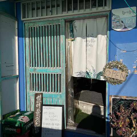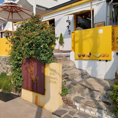 걷고 지쳐 히뇨울 문화 마을에 있는 카페 요울체크장(체크장은 책장이나 책장, 요울이?)로 티타임.