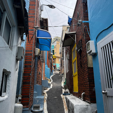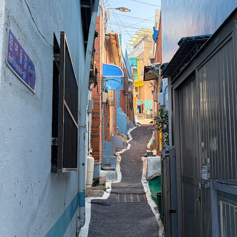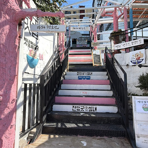 아름다운 골목길들이 마치 감천의 축소판 같지만, 북적거리는 인파는 없어요. 멋진 전망을 자랑하는 현지 카페와 기념품 가게들이 많습니다. 저는 화요일에 갔는데 문을 닫은 곳이 많아서 다른 요일에 가는 걸 추천해요. 계단이 많고 골목길이 좁고 경사가 심하니, 거동이 불편하신 분들은 작은 골목길은 피하시는 게 좋습니다. 메인 거리에는 멋진 전망을 감상할 수 있는 카페와 가게들이 많으니 그쪽을 둘러보시는 걸 추천해요.