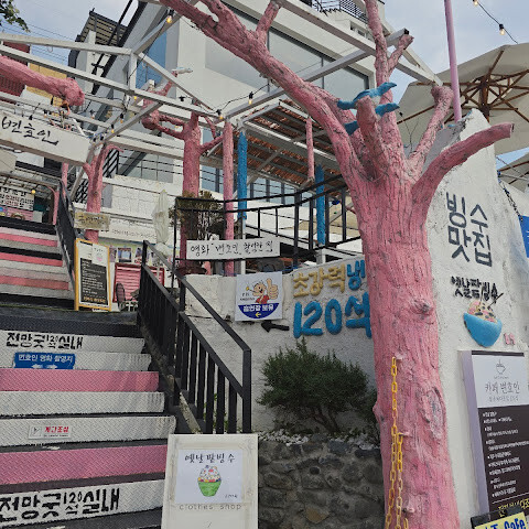 카페와 기념품 가게가 많아 활기찬 분위기를 느낄 수 있습니다. 감천에 들러 피자집이나 어시장에서 잠시 기다린 후, 저녁 늦게 이곳을 방문해 보는 것도 좋습니다.