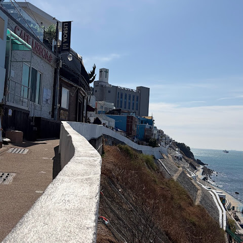 개인적으로 부산 문화마을 중에서 가장 마음에 드는 곳이에요. 언덕 위 산책로에는 카페와 아기자기한 가게들이 있고, 바닷가 쪽으로 가면 작은 터널도 있어요. 맑은 날에 가면 멋진 경치를 감상할 수 있어서 좋아요.