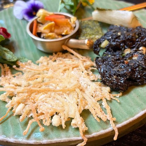 메뉴에 대해 말씀드리자면, 많은 요리가 버섯을 기반으로 했고, 된장과 참깨 드레싱은 괜찮았지만,