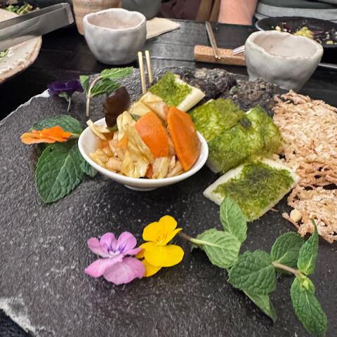전반적으로 아주 만족스러운 경험이었고, 음식은 미슐랭 스타를 받을 만한 가치가 충분했어요. 특히 비건 메뉴가 다양해서 정말 좋았습니다.