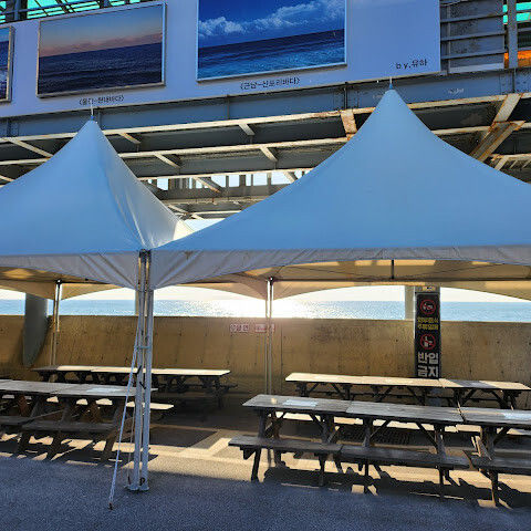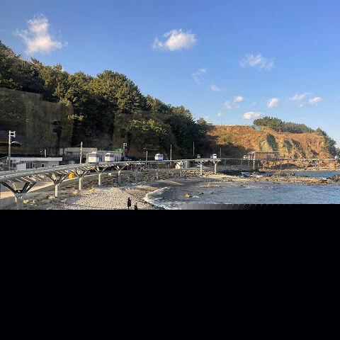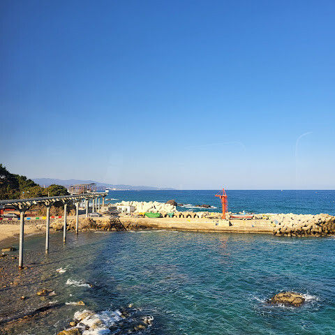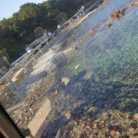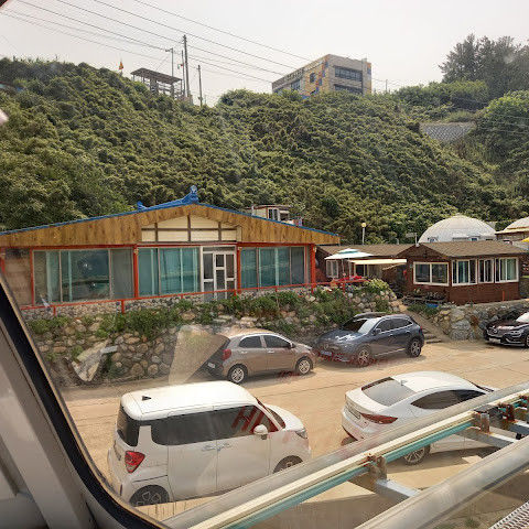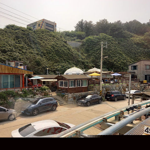 몇집없는 바닷가 위로 스카이레일이 지나가는 곳에 있어요~^^ 바닷가 이쁨니다~ 간이 횟집도 있구요~^^