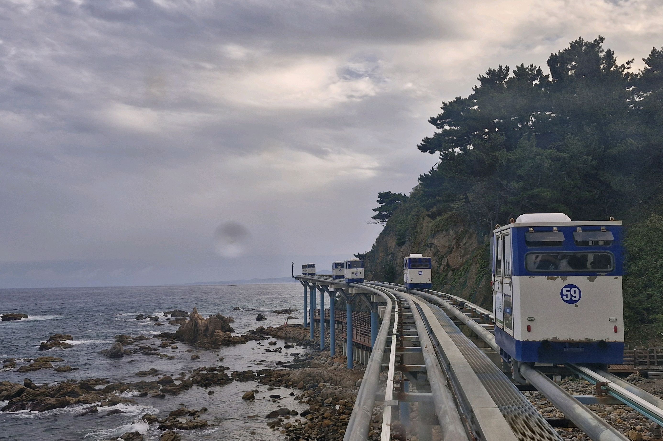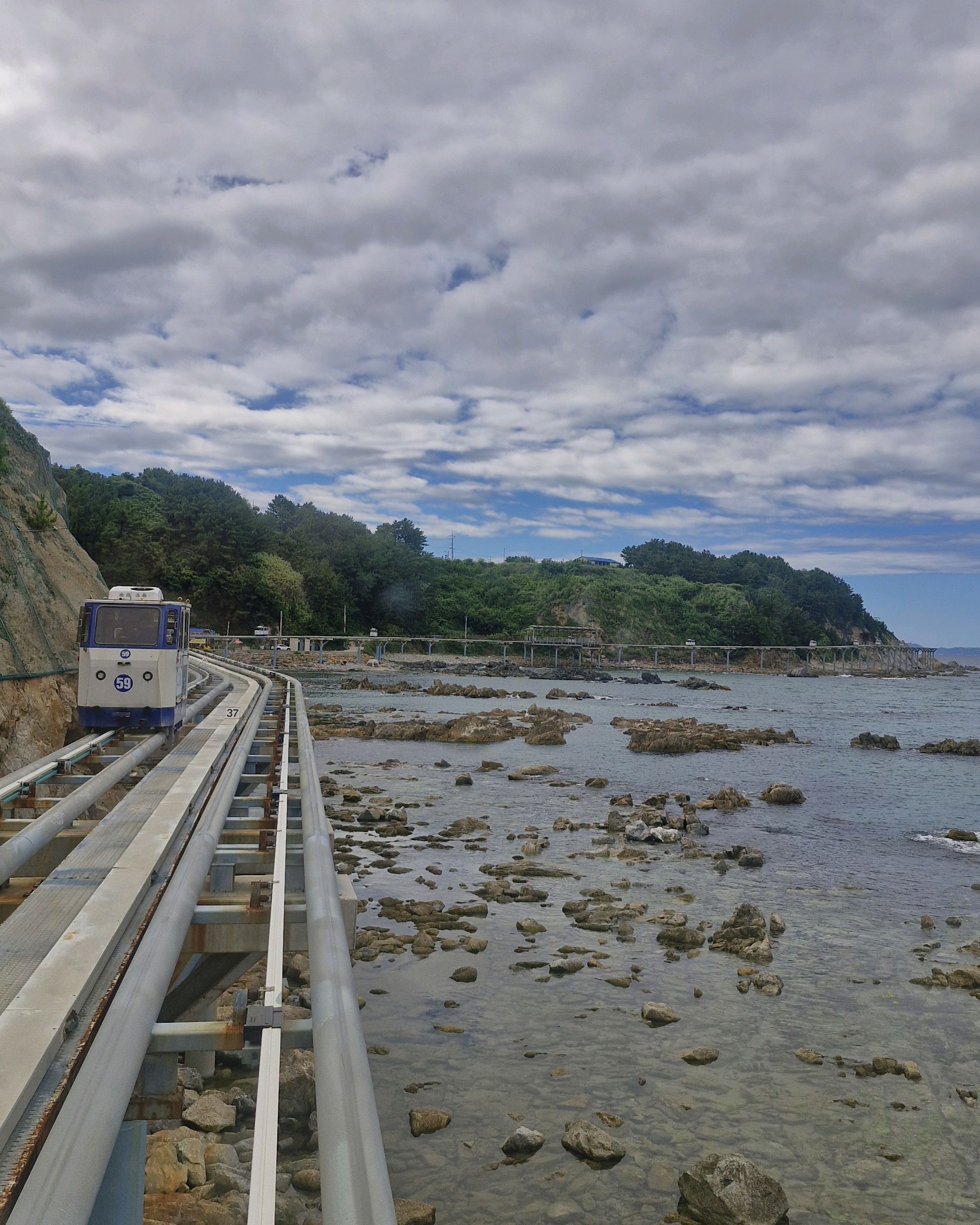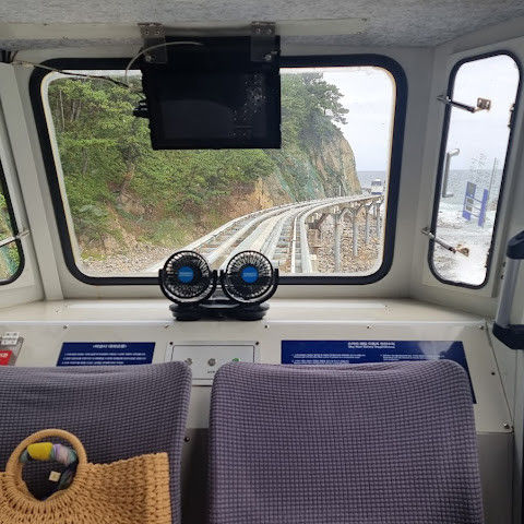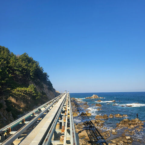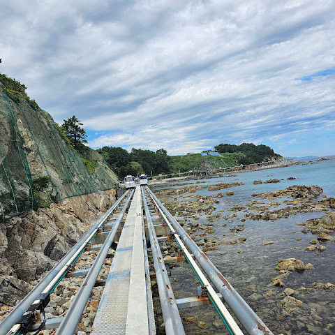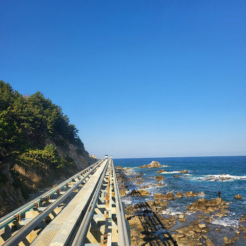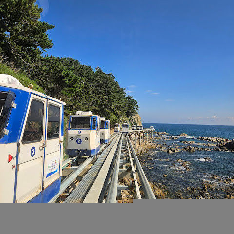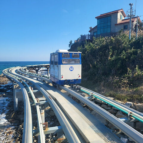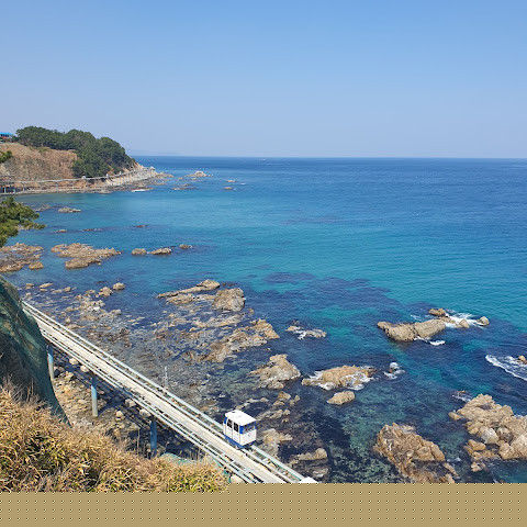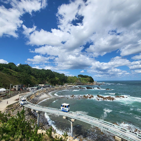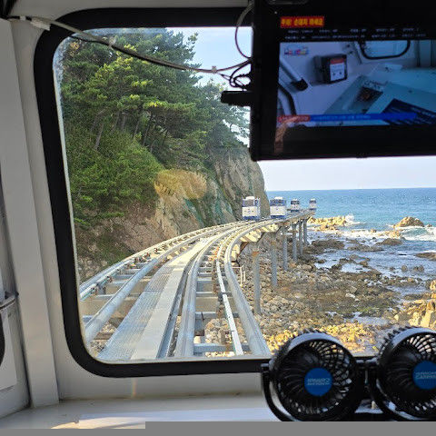 해안선을 따라 동해바다와 해안절벽을 동시에 조망하면서 시원한,바닷바람을 맞으며 조금은,덜컹,거려도 운치있고 재미있으며 전망에 반할정도네요 가족돈반하면 좋을 것 같아요