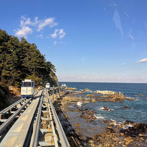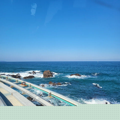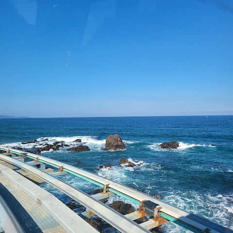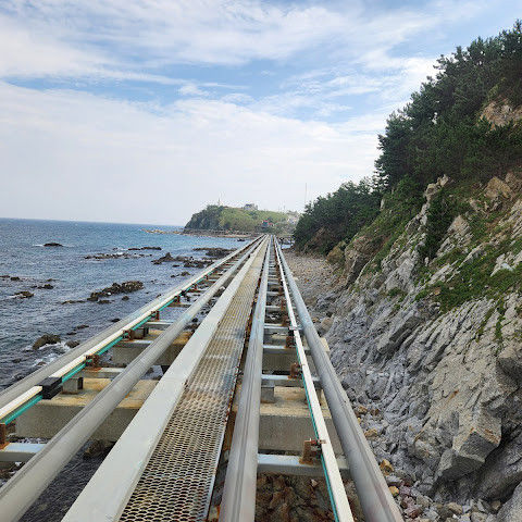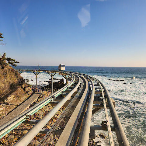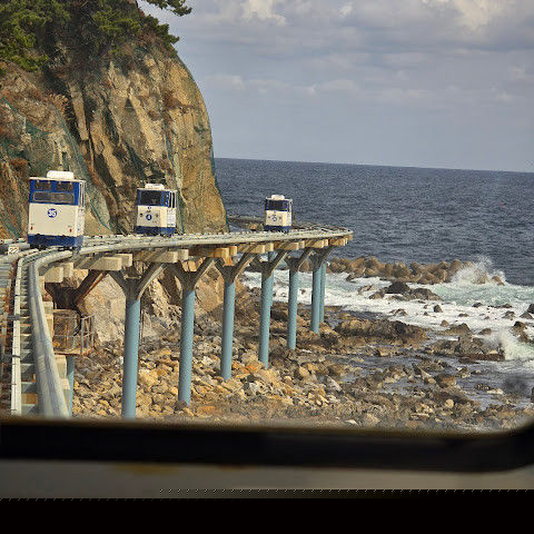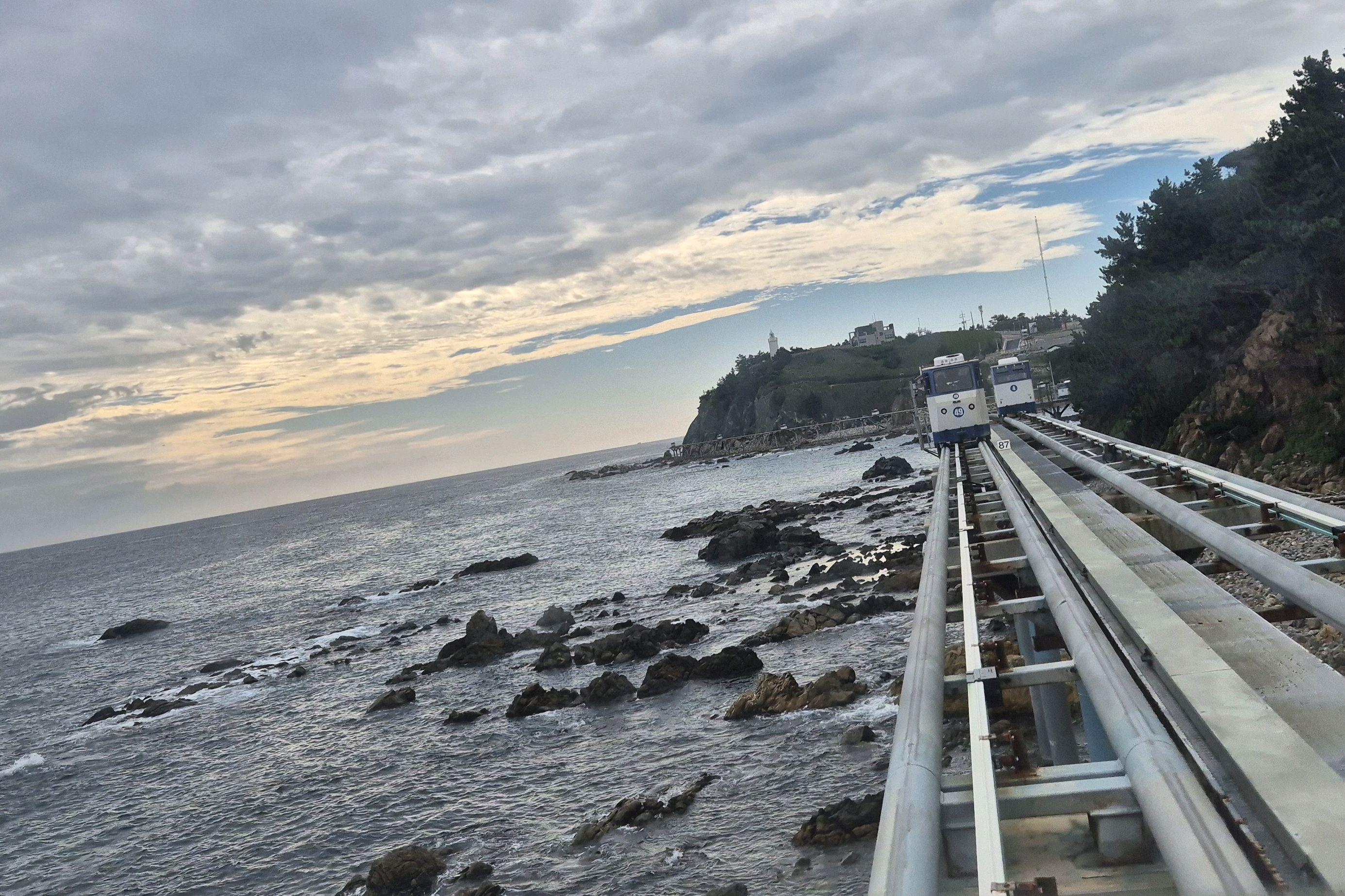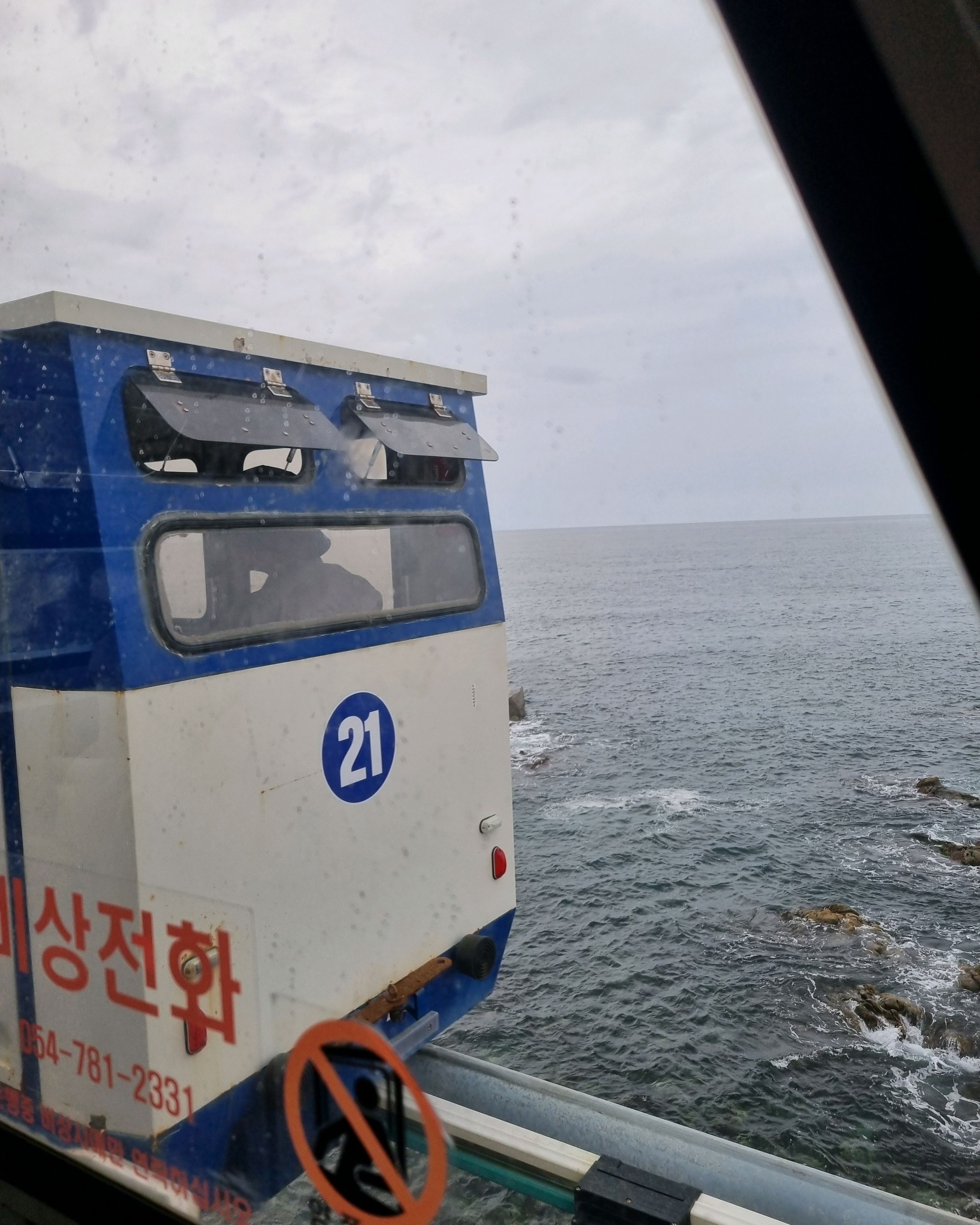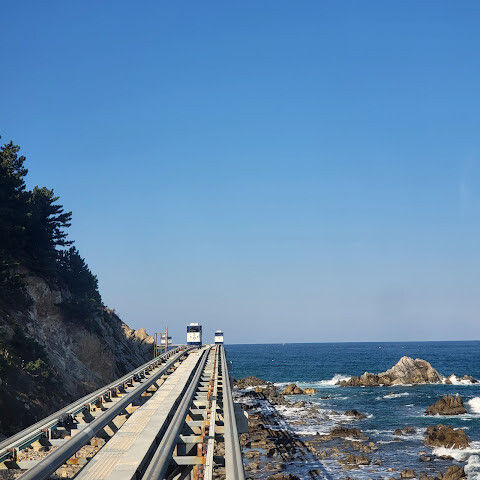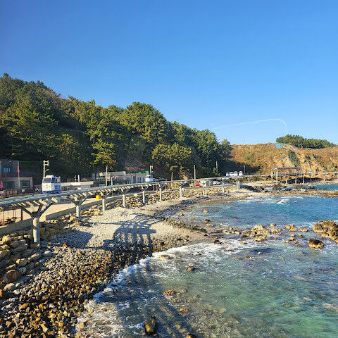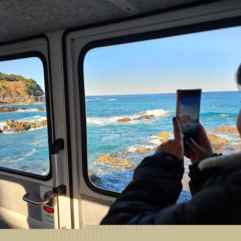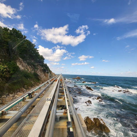 해안선을 따라 동해바다와 해안절벽을 동시에 조망하면서 시원한,바닷바람을 맞으며 조금은,덜컹,거려도 운치있고 재미있으며 전망에 반할정도네요 가족돈반하면 좋을 것 같아요