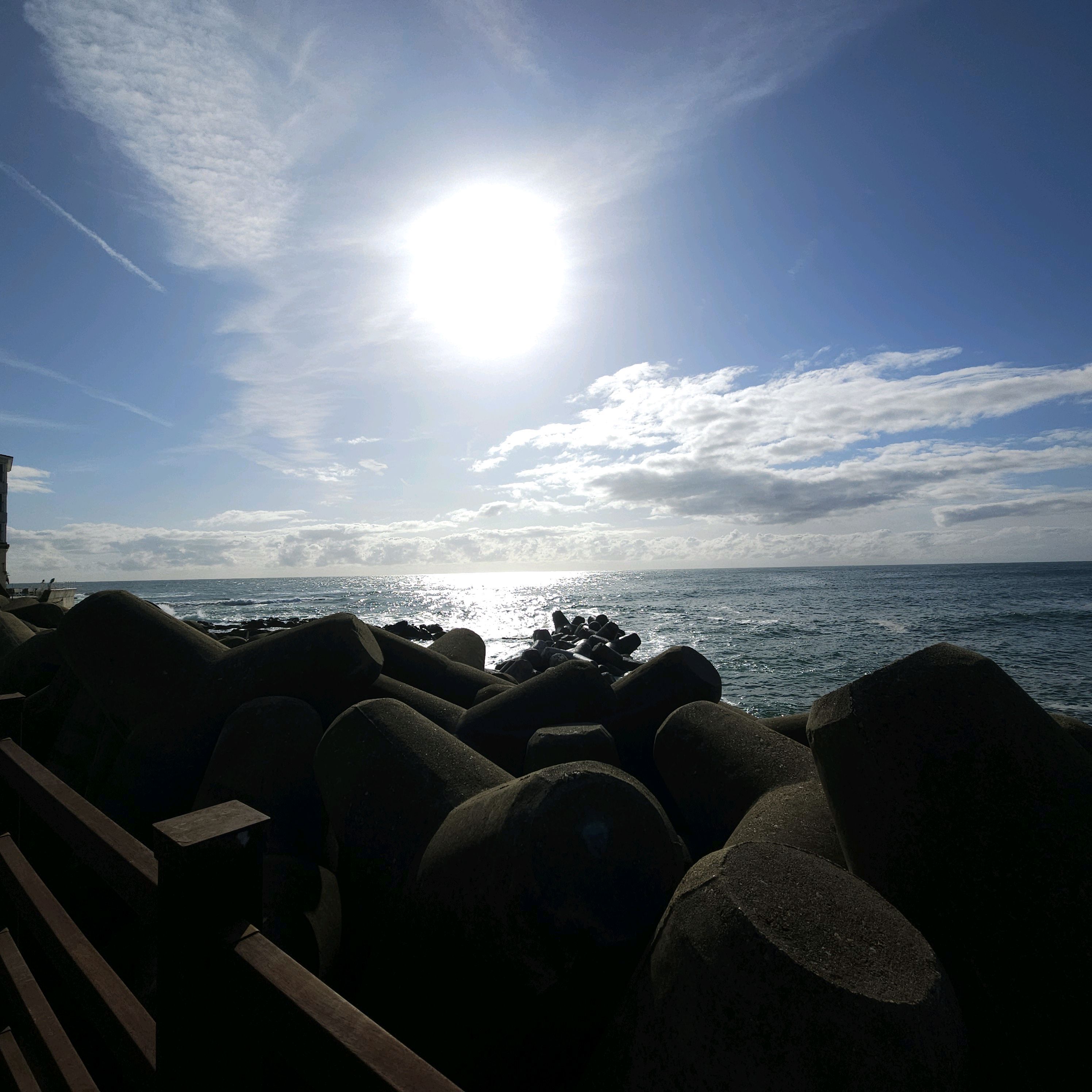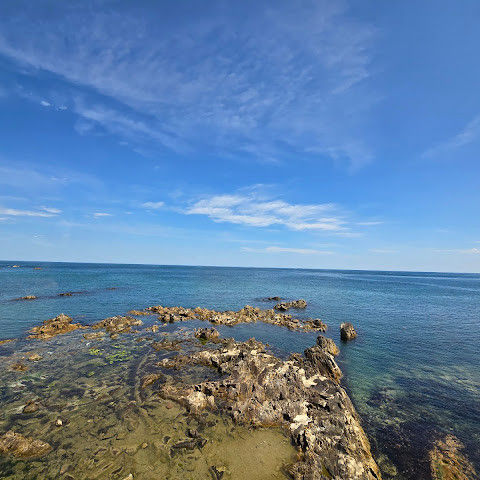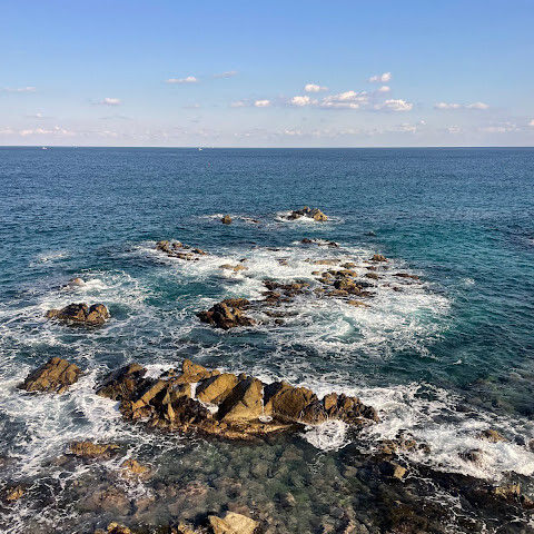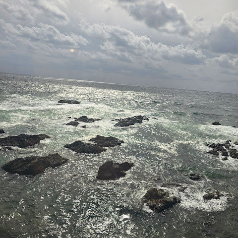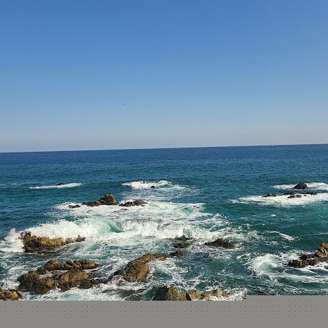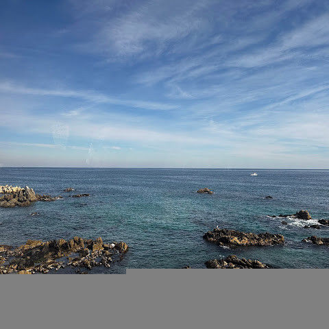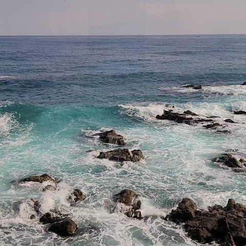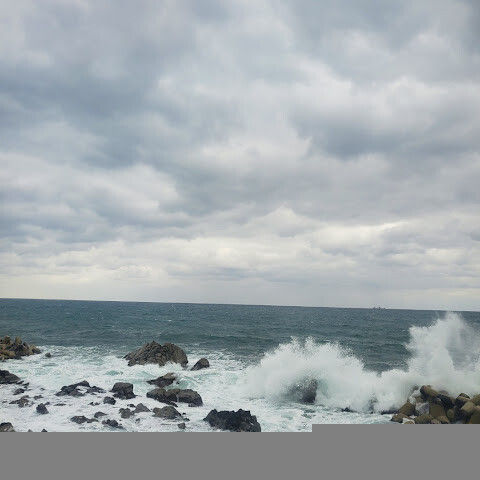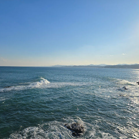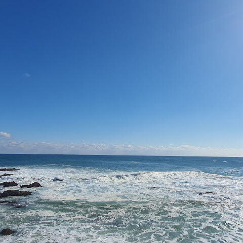천천히 움직여 바다보며 수평선 바위 파도 하늘 힐링하기 좋아요.