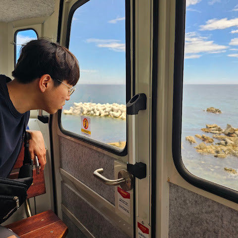 해안 절경을 볼 수 있을 것 같아서 방문했습니다 3시표를 끊었고 2시 30분부터 탑승이 가능했습니다 아마도 시스템이 그런거 같습니다 경치도 좋고 모터 구동방식이라 힘이 들지 않지만 에어컨이 용량 부족이라 더운 날씨에는 땀 한바가지 흘릴 것을 각오해야합니다 시설이 조금 낡은 것도 아쉽습니다