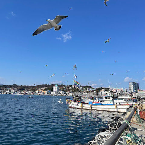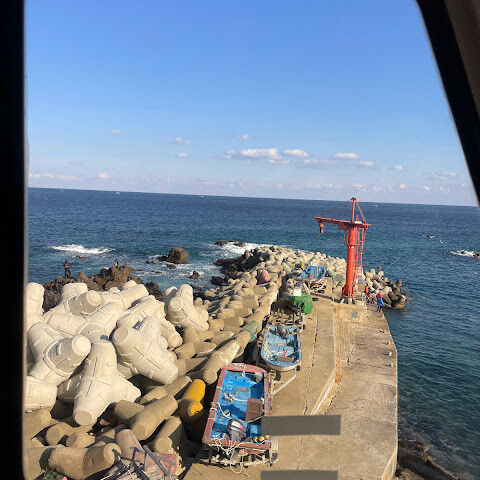 죽변항 왼쪽 구석에 있어요 평일인데도 관광객이 좀 있어요 계속 돌아오는 방식이라 많이는 안 기다리더라구요 시원한 동해바다를 잠시 구경하시면 가슴이 뻥 뚤리는 것 같아요