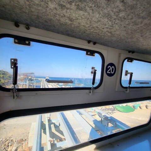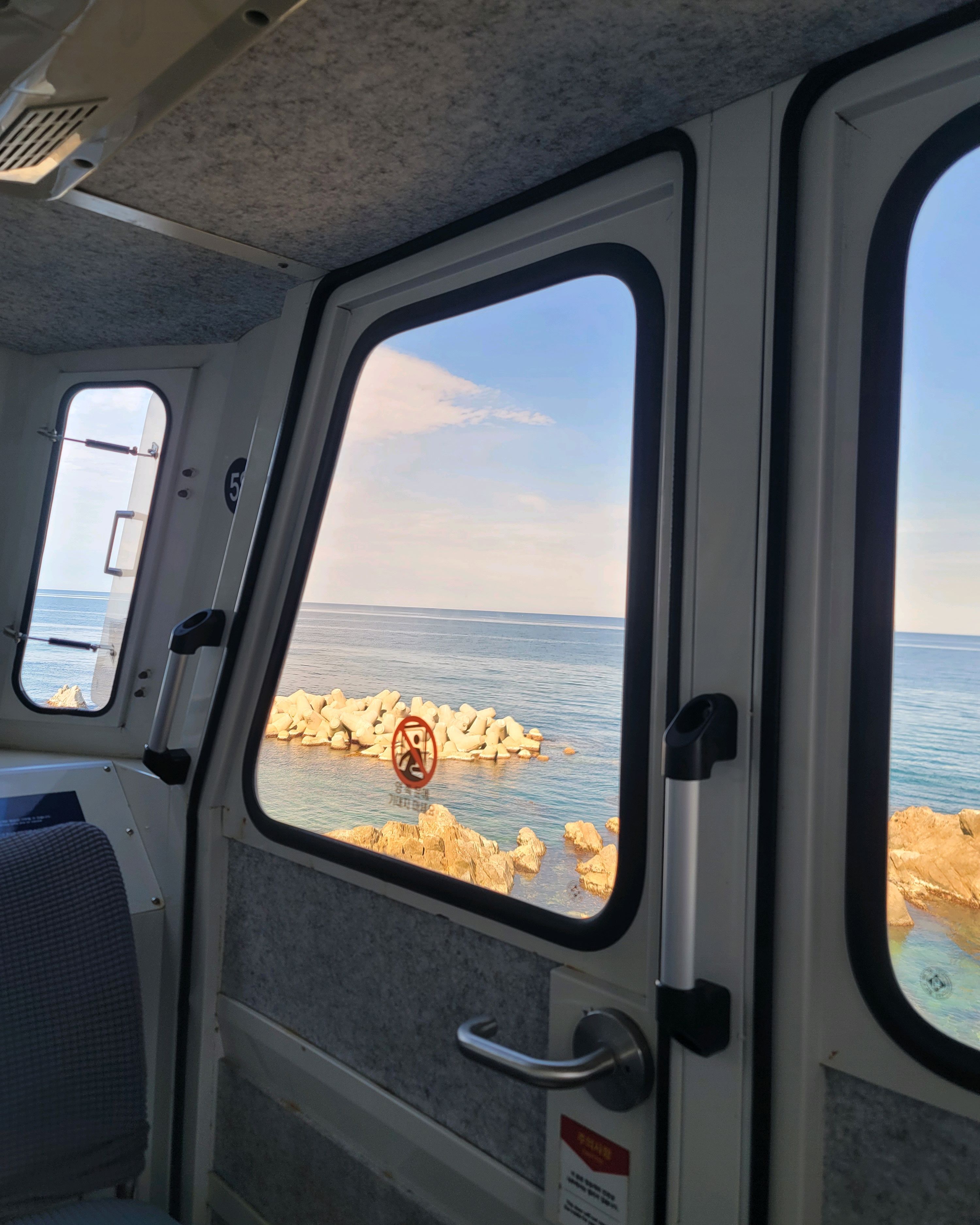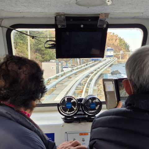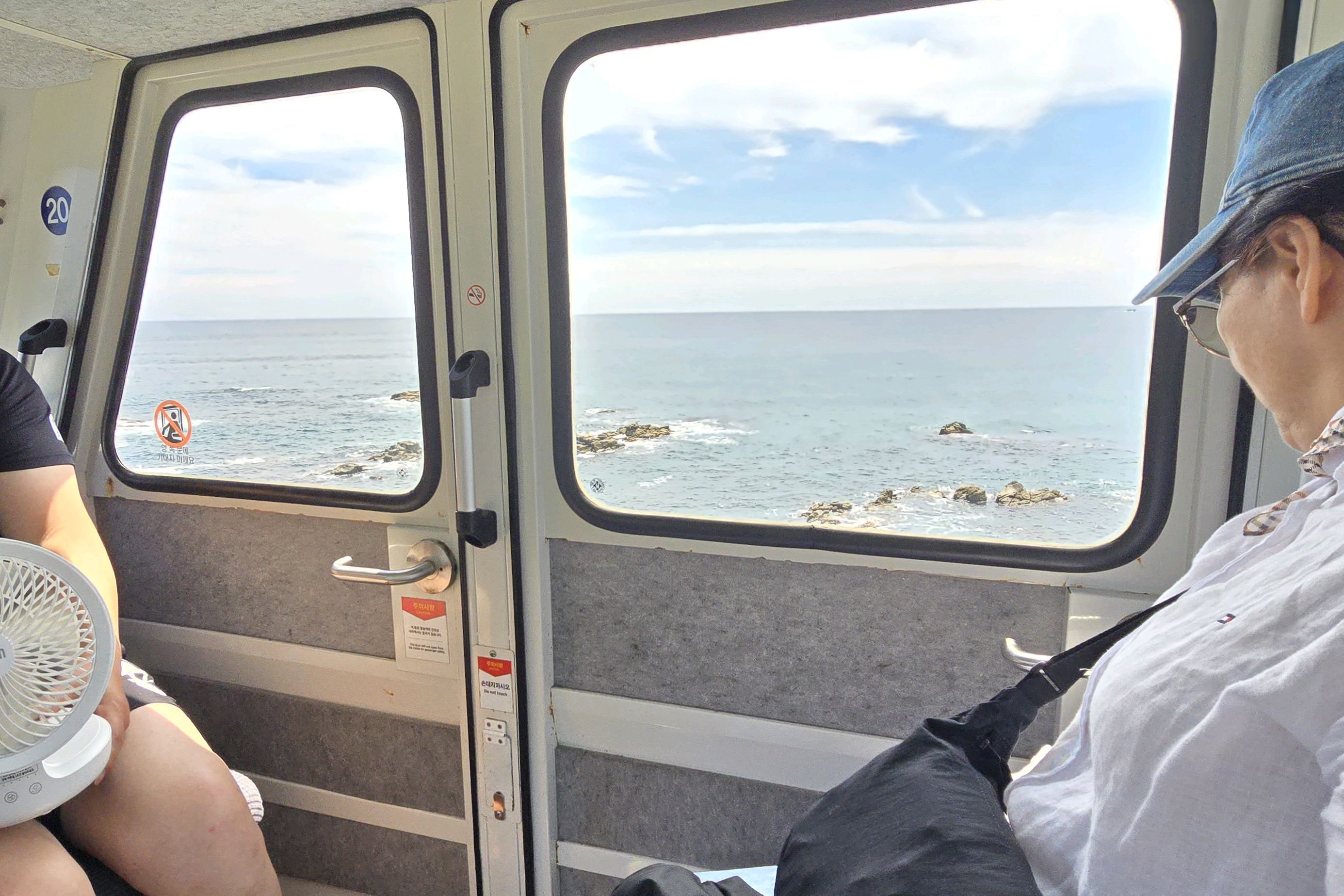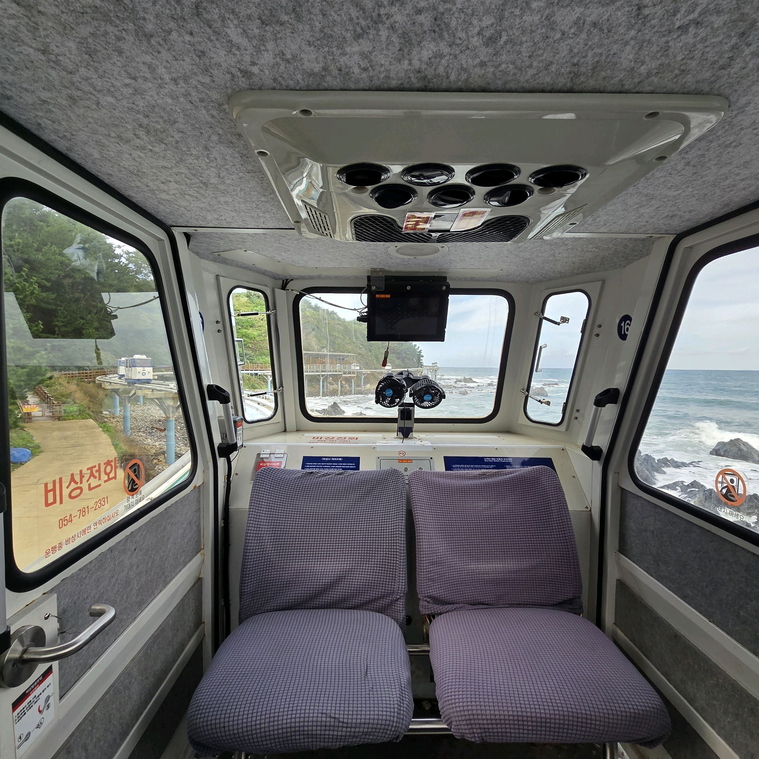 일단 키오스크를 동해 전화등록 하시고 대기 하셔야 합니다 대기와 탑승전대기 포함 20-30분쯤 대기 있는거 같습니다 해안가를 따라 절경 입니다 한번쯤 타보면 좋은거 같습니다 실내 내부는 선풍기 및 창문이 있어서 많이 덥지는 않습니다