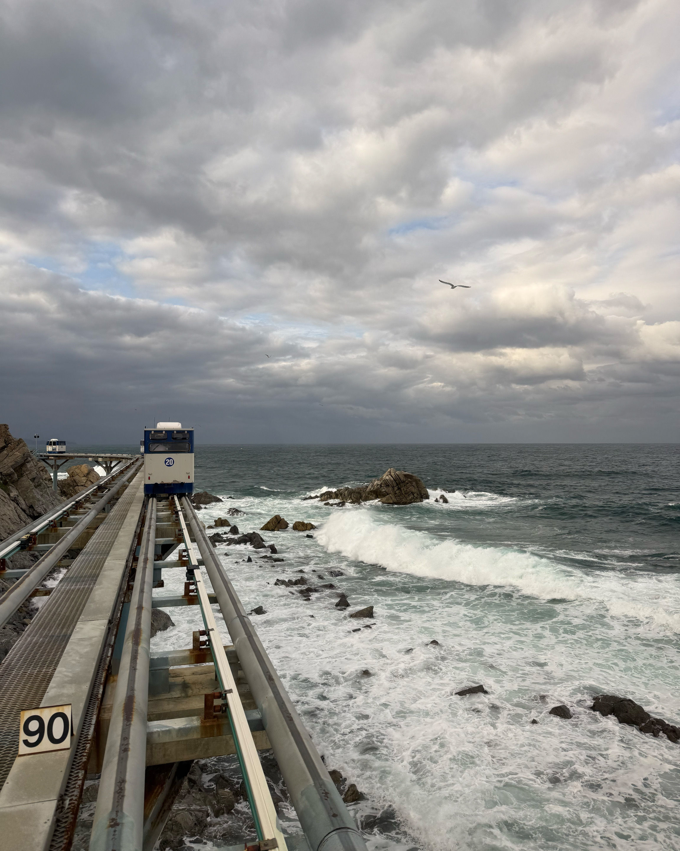 우린 왕복시간이 너무짧을 정도로 예쁜파도와 바다를 가로지르는듯한 레일에 감동받고옴!