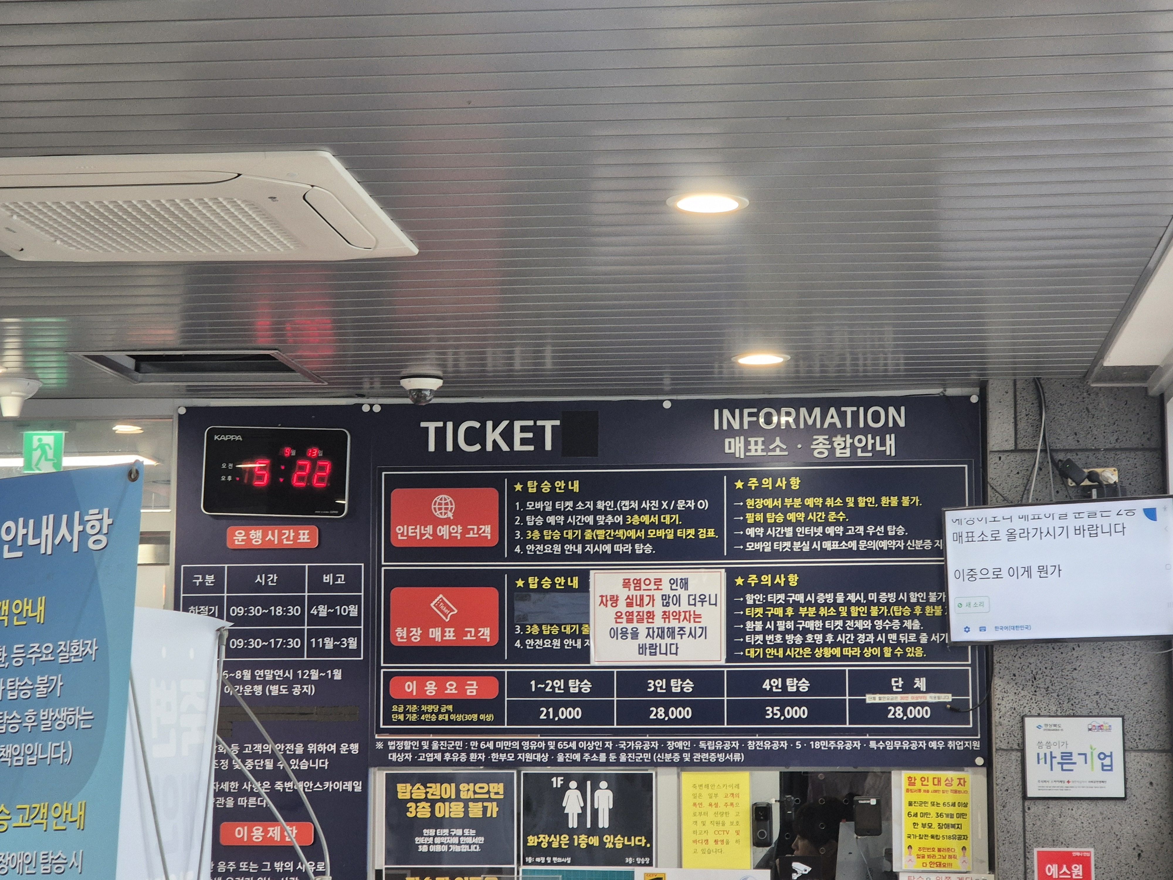 안에 에어컨은없어서 다소 덥기는함(미리 매표소에서 얘기해주심)