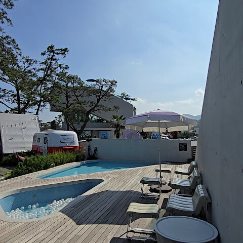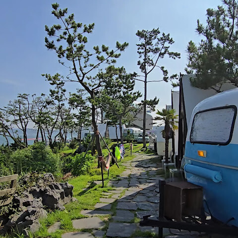 더무빙 카라반은 부산 기장에 있다. 바다와 해수욕장이 인접하여 경치가 아름답고 대형 카페와 수영장, 각종 편의시설을 갖추고 있다.