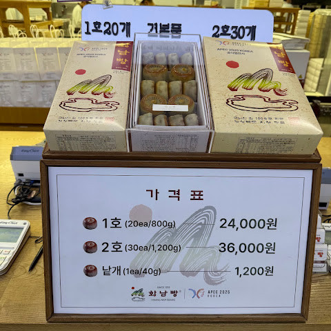 선물로 받아 먹어보다 경주 간 김에 들린 본점~ 따뜻한 황남빵 더 맛있네요~~ㅎㅎ 몇 개씩도 팔아 좋습니다. 1200원/개