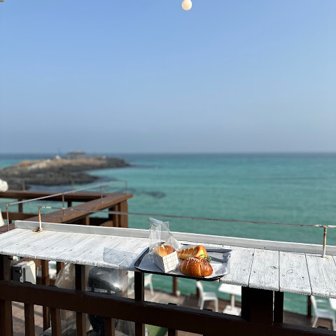 빵집이 눈에 띄어서 아침 식사를 하러 이곳에 들렀어요. 빵을 바로 앞에서 굽는 것 같더라고요. 올리브 포카치아, 초콜릿 크루아상, 짭짤한 페이스트리, 밀푀유 큐브 등 여러 가지를 먹어보고 싶었어요. 전부 맛있었지만 가격이 조금 비싼 편이었는데, 아마 위치 때문일 거예요. 실내와 야외 좌석이 모두 있고, 해변이 보이는 전망도 즐길 수 있어요.