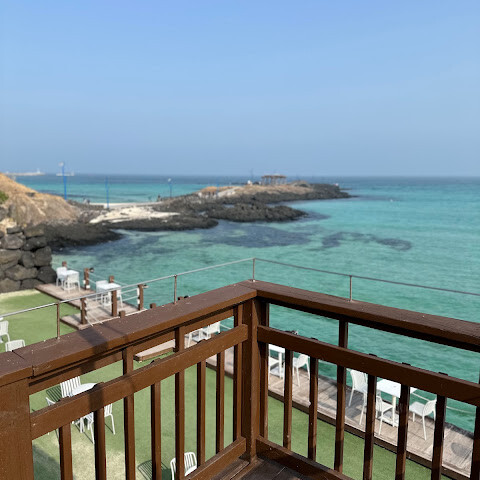 뷰가 좋아서 맑은 날씨에 가기 좋아요. 김녕바당라떼는 사진도 예쁘게 나오고 맛도 좋아요.