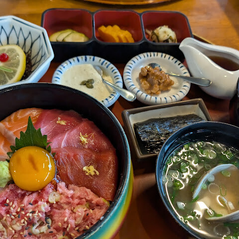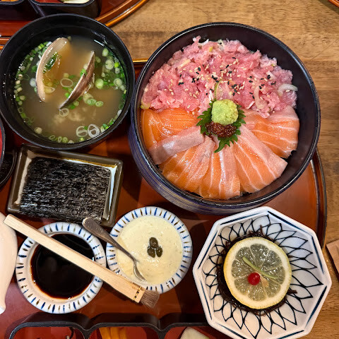 분위기도 아름답고, 직원분들도 정말 친절했고, 음식도 훌륭했어요. 저는 연어 참치 세트를 시켰는데, 낫토와 여러 가지 소스를 처음 먹어봤거든요. 덕분에 낫토에 푹 빠져버렸어요! 정말 좋은 곳을 발견했네요!