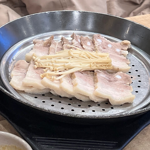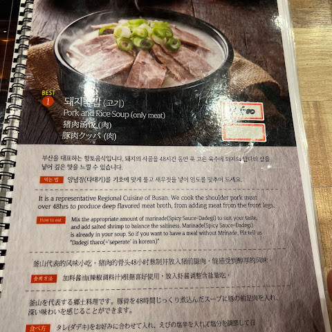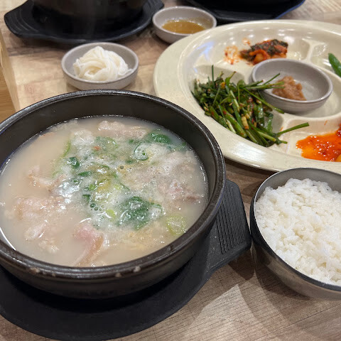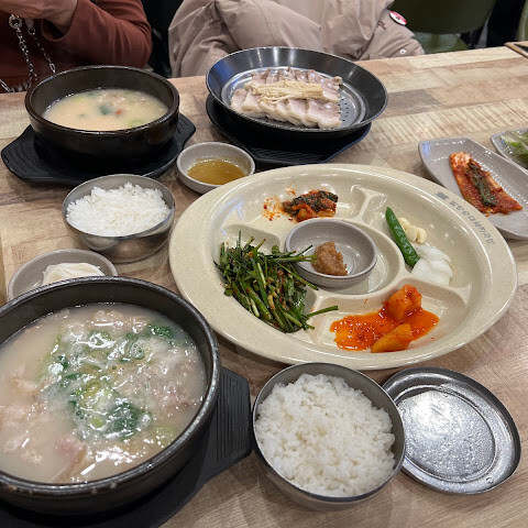 이 식당은 한국에 지점이 여러 개 있습니다. 돼지국밥은 정말 맛있습니다. 새우장, 소금, 후추를 더하면 국물이 더욱 깊어집니다. 삼겹살만 주문하면 좀 오래돼서 조금 실망스럽습니다.