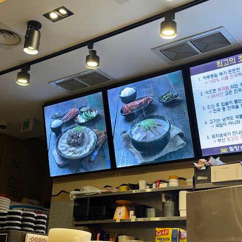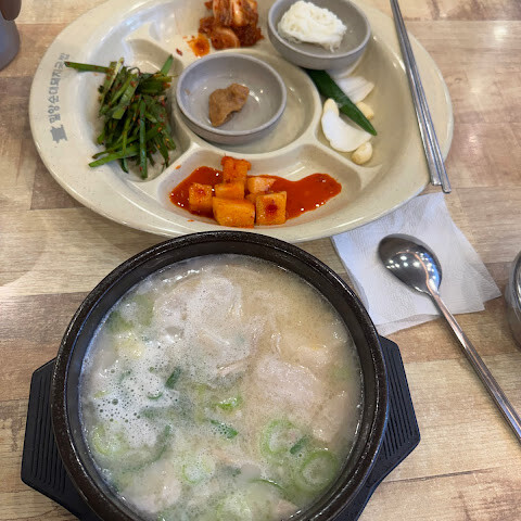 이 식당은 맛있는 부산식 돼지고기탕을 판매합니다. 인기가 많아서 피크 시간대에는 자리를 잡으려면 줄을 서야 할 수도 있습니다.