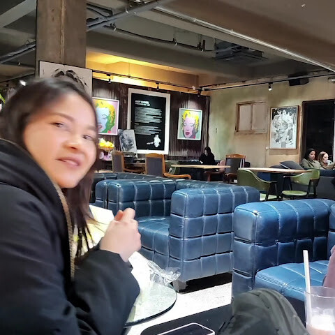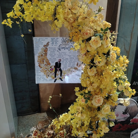 다른 많은 아미들처럼 저도 부산에 갔을 때 이 카페에 들렀어요. 네이버 지도를 이용하면 쉽게 찾을 수 있었고, 안에 들어가니 규모가 엄청나서 깜짝 놀랐어요 (영국에서 온 저는 이렇게 큰 카페를 본 적이 없거든요). 음식도 정말 맛있었는데, 특히 치즈가 듬뿍 들어간 따뜻하게 나오는 치즈롤이 최고였어요! 그리고 카페 곳곳에 지민 관련 그림, 수상 경력, 팬레터 등이 전시되어 있었어요.