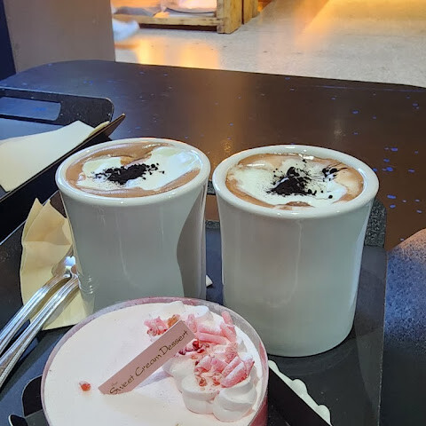 카페 분위기가 너무 예쁘고 아름다웠어요. 아이스 아메리카노랑 초콜릿 케이크를 먹었는데 둘 다 정말 맛있었어요. 게다가 지민 아버님도 뵙게 되어서 정말 행운이라고 생각했어요. 전 세계 아미라면 꼭 한번 가봐야 할 곳이에요!