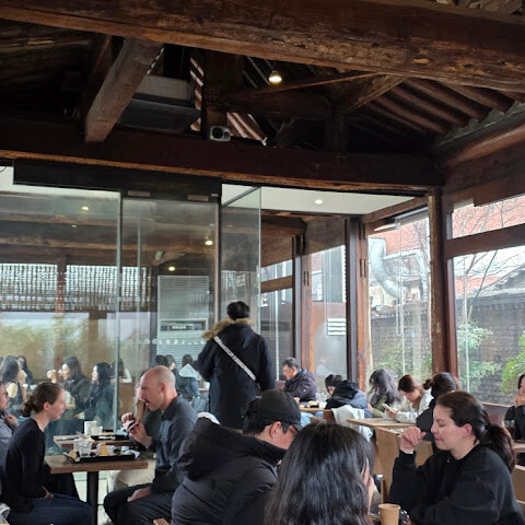 커피와 페이스트리는 훌륭했습니다. 가격도 괜찮았고 서비스도 매우 좋았습니다. 하지만 편안하게 커피를 즐기고 싶다면 이곳은 적합하지 않습니다. 우선, 좌석 공간의 3분의 1은 소반, 즉 바닥에 둘러앉는 작은 테이블로 채워져 있습니다. 전통적인 분위기를 연출하려는 의도는 이해하지만, 소반은 비어 있는 반면 테이블 자리에는 줄이 길게 늘어서 있었습니다. 게다가 스피커에서는 재즈 음악이 흘러나와 혼란을 가중시키는데, 이는 전통적인 분위기와는 거리가 멀어 보입니다. 테이블 자리는 너무 빽빽하게 붙어 있어서 사실상 낯선 사람들과 함께 앉아야 합니다. 따라서 관광객이라면 바닥에 앉는 것도 불편하고, 옆 사람과 나누는 대화가 불편할 수도 있습니다. 이곳에서 식사를 하는 것은 절대 추천하지 않습니다.