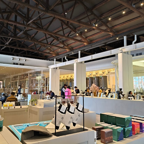 커피 공간 또한 모던하게 디자인되어 여유롭고 즐거운 커피 경험을 선사합니다. 또한, 매장 내부는 간결하게 구성되어 있어 원두, 커피 티백, 기타 커피 제품을 쉽게 이용할 수 있습니다.
