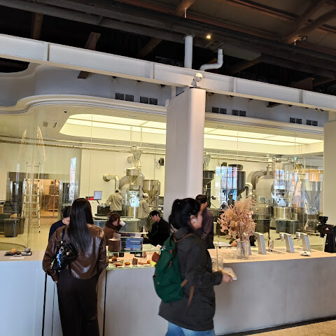 처음 봤을 때 바닷가 창고 지역에 이렇게 큰 커피숍이 있을 거라고는 생각지 못했습니다. 커피숍 외에도, 커피숍 뒤편에는 실제 원두 창고와 생산 라인이 있습니다. 그날 새벽 2시가 넘어서 도착해서 잠이 안 올까 봐 콜롬비아 아폰테 디카페인 라떼를 주문했습니다. 진한 로스팅 향이 나는데 한 잔에 6,500엔밖에 안 하더군요!
